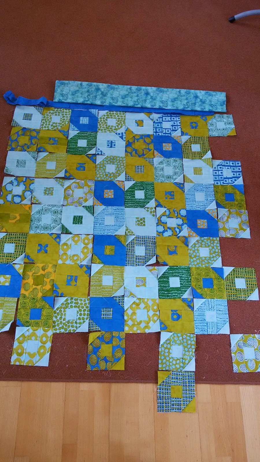 Zwei Blöcke habe ich schon. Er wird zwar ziemlich verrückt von den Farben, aber im Ganzen wird es schon gut werden. Was soll`s. Das probiere ich jetzt aus.
